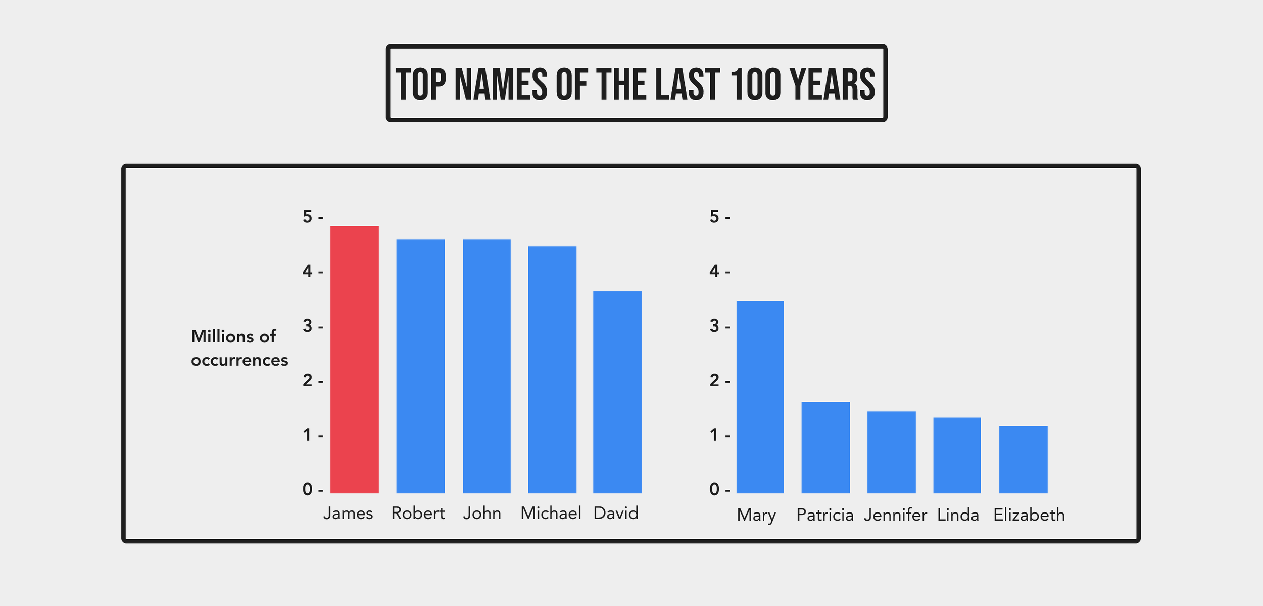 in a name is an interactive data visualization project that showcases information about the popularity of names over time, using data from the social security administration.